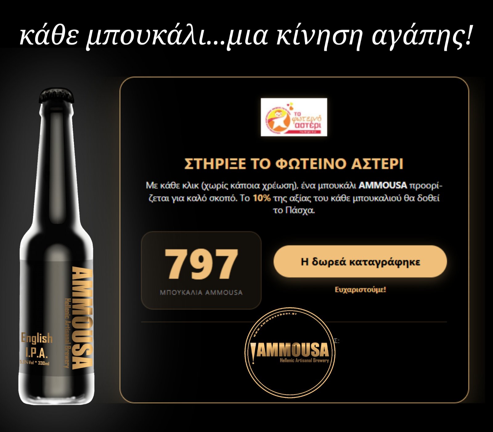 Το 10% της αξίας κάθε μπουκαλιού AMMOUSA που αντιστοιχεί στην καμπάνια, παραδόθηκε στους ανθρώπους του «Φωτεινού Αστεριού».